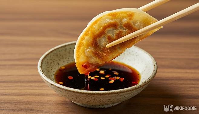 군만두는 소스와 함께 먹으면 더 맛있다. 간장 3, 식초 1, 물 1 비율로 섞고 고춧가루를 약간 넣으면 된다. 바삭한 겉면, 촉촉한 속, 새콤한 양념이 잘 어우러진다.