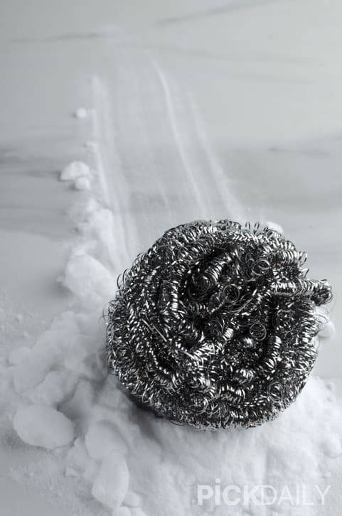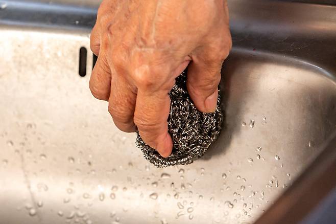 1. 거친 수세미로 문지르기