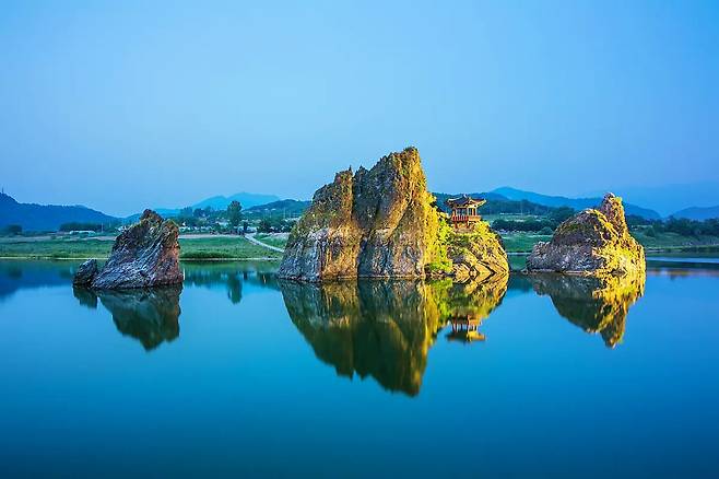 첫 번째 추천지는 단양의 상징과도 같은 도담삼봉이다. 남한강 한가운데 우뚝 솟은 세 개의 봉우리는 단양 8경 중 으뜸으로 꼽힌다. 푸른 강물과 어우러진 삼봉의 풍광은 사계절 모두 아름답지만 특히 가을 단풍철에 많은 이들이 찾는다. 인근에는 단양의 대표 전통시장이 있어 관광과 먹거리를 함께 즐길 수 있다.