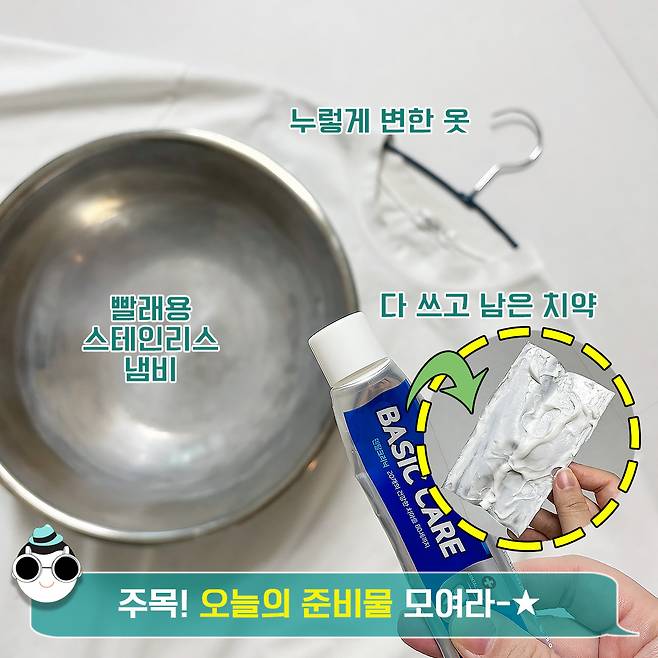– 준비물 : ★남은 치약 혹은 버리는 치약★, 빨래용 스테인레스 냄비, 누렇게 변한 옷