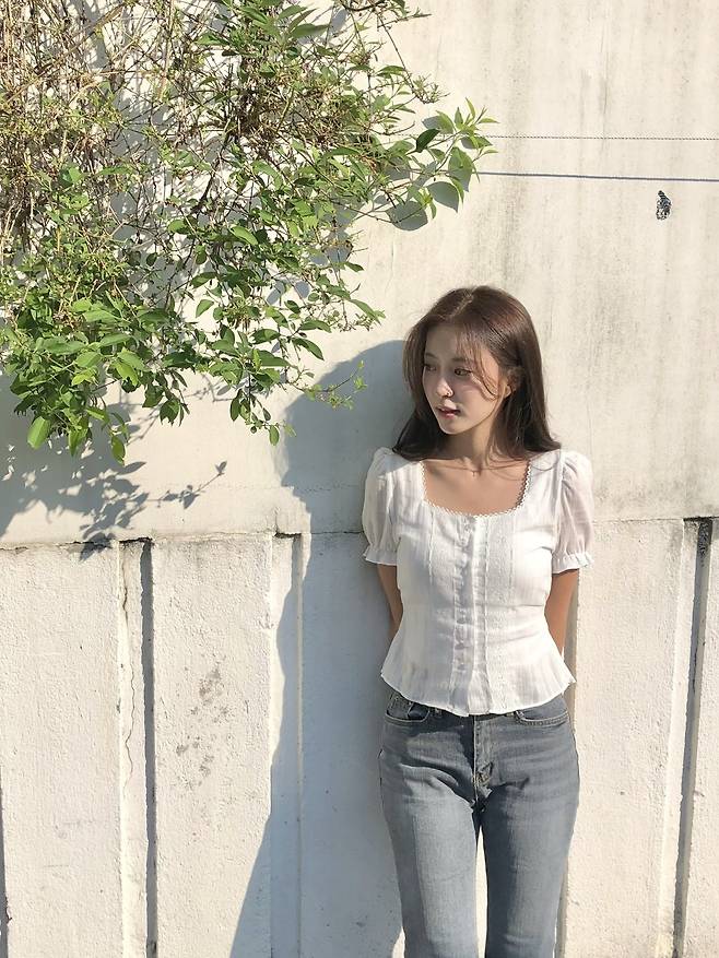 너무 밝지도, 너무 진하지도 않은 워싱이 화이트 톤의 블라우스를