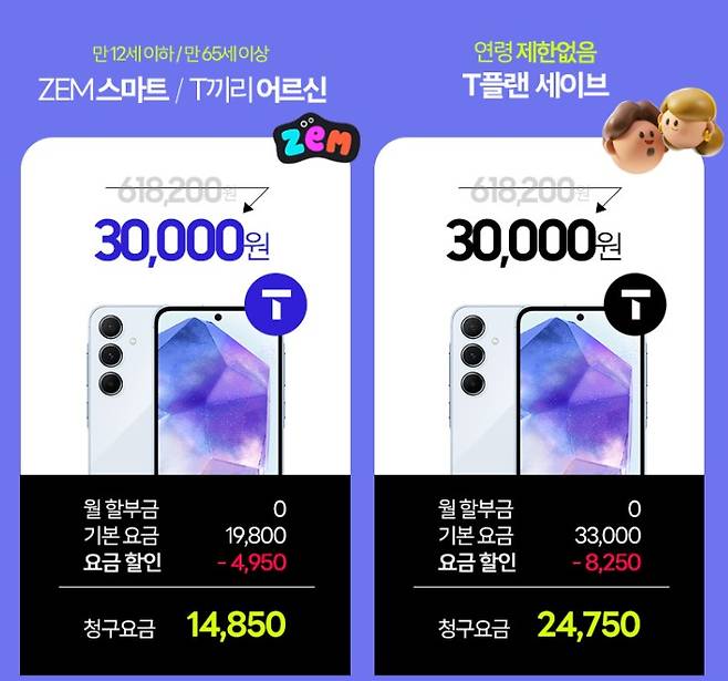 SK 번이 갤럭시퀀텀5 세이브/잼/어르신 요금제 조건