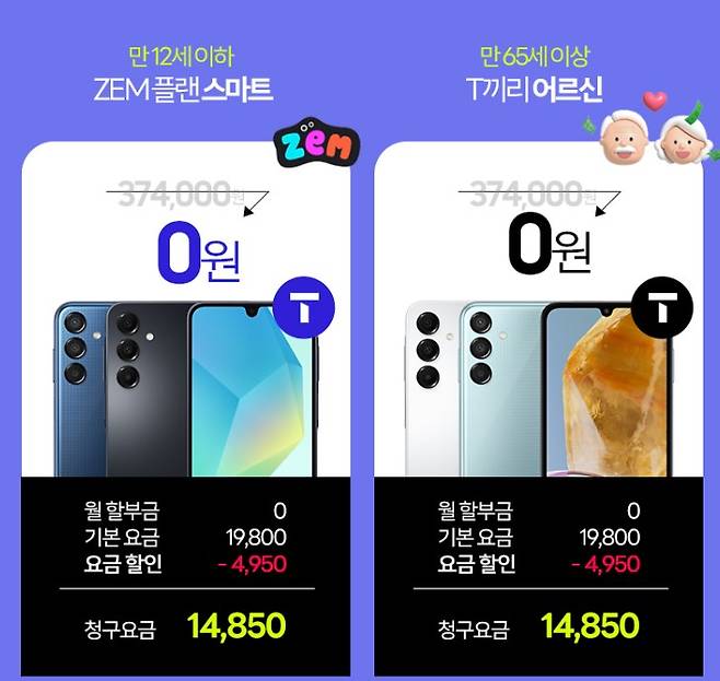 SK 번이 갤럭시 A15 / 갤럭시와이드7 선약 할부원금 0원 공짜폰