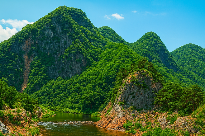총 8.4km 길이의 강변 트레킹 코스로, 물소리와 새소리, 그리고 기암괴석과 숲이 어우러진 풍경이 함께하는 길입니다. 사계절 내내 아름답지만 특히 여름철에는 시원한 계곡물이 매력을 더해 가족 여행지로도 인기가 높습니다.