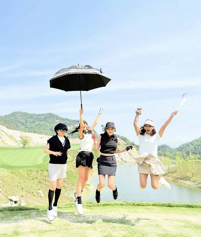 정순주는 밝은 날씨 아래, 올화이트 톤의 골프 셋업으로 우아한 스윙 감성을 표현했습니다.