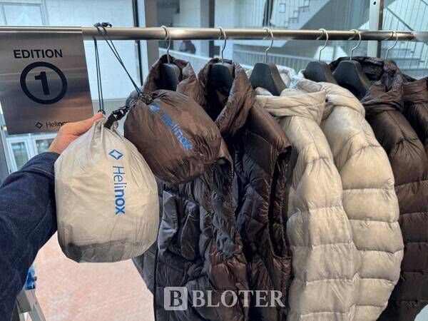 22일 서울 용산구 헬리녹스 웨어 팝업스토어. 2층 판매 공간에 진열된 갈색 다운 베스트(조끼)를 점원이 단 네 번 만에 성인 주먹 크기로 접었다. 안감에 연결된 주머니로 쏙 집어넣으며 “무게는 300그램 남짓”이라고 강조했다. ‘캠핑계 샤넬’로 불리는 헬리녹스의 정체성을 이식받은 헬리녹스 웨어 에디션1 제품이다.