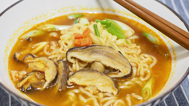 라면을 건강식으로 바꾸는 가장 쉬운 재료는 버섯이다. 표고, 느타리, 양송이처럼 집에 있는 버섯이면 충분하다. 버섯에는 베타글루칸과 셀레늄, 글루타민산이 풍부해 면역 관리와 항산화 작용에 도움을 준다.