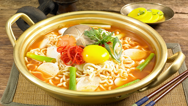 라면은 탄수화물 비중이 높은 음식이라 단백질 보완이 중요하다.