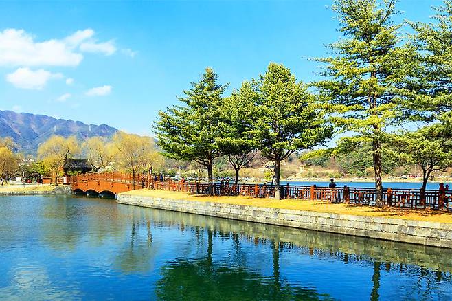 오래된 정자와 고목들 사이를 걷다 보면 마음까지 편안해지는 시간. 의림지는 역사적 가치와 더불어 봄날의 산책 코스로도 손색이 없다.
