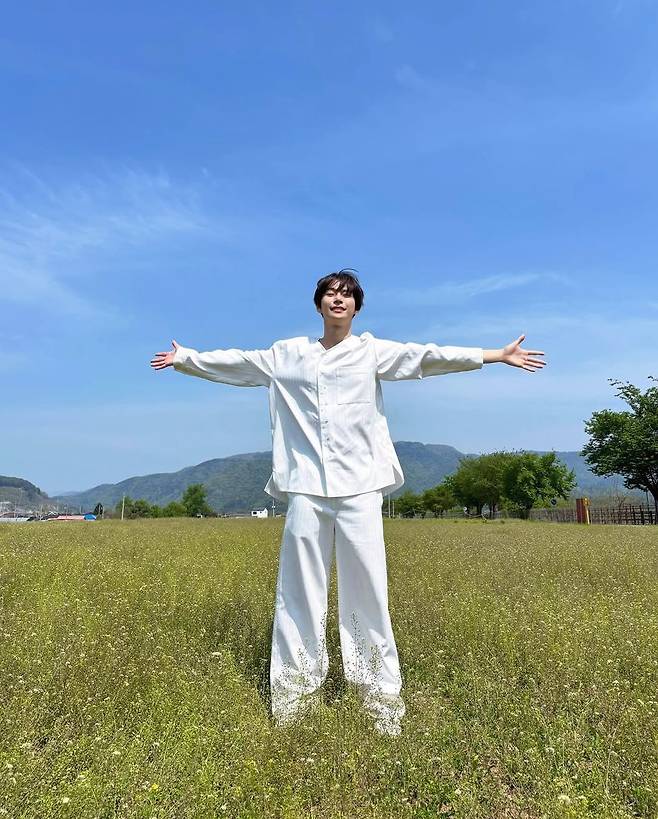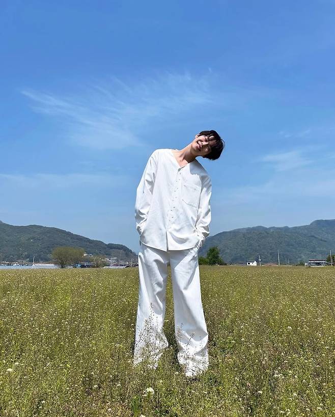 나중에 기억 속 어딘가에서 이 장면이 떠오른다면, 아마 바람 소리와 풀잎의 냄새까지 함께 따라올 것이다. NCT 도영의 인스타그램에 올라온 한 장의 사진이 그 감정을 대변한다. “다 기억할게 모든 순간”이라는 멘트처럼, 한없이 맑은 하늘과 광활한 초원이 배경이 된 이 사진 속에서 도영은 순백의 올화이트 셋업으로 그 자체가 한 편의 시가 된다.