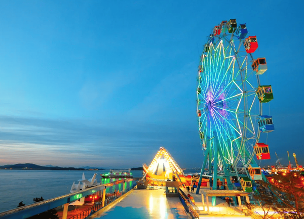 테마파크, 해양 공원, 문화의 거리 등이 어우러져 단순한 바다 구경 그 이상을 즐길 수 있는데요. 저녁이 되면 해안도로를 따라 조명이 반짝이며 산책로 전체가 화려한 야경으로 물듭니다. 여름밤의 낭만을 제대로 느낄 수 있는 곳입니다.