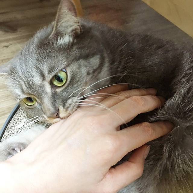 그러나 쓰다듬어주는 부위나 방법이 맘에 들지 않을 때도 불만의 표시로 가볍게 물 수도 있습니다. 쓰다듬으면 좋아하는 곳은 고양이마다 다르고 같은 고양이일지라도 그날그날 기분과 몸 상태에 따라 바뀌기도 합니다. 고양이가 스트레스를 받고 있다는 표시로 가볍게 물 때는 일단 쓰다듬는 것을 멈추고 상태를 지켜보는 것이 좋겠습니다.