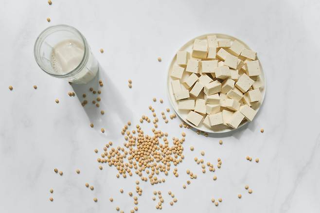 두부는 콩으로 만드는데, 콩에는 이소플라본이라는 단백질이 들어있다고 해요. 이소플라본은 여성 호르몬인 에스트로겐과 비슷한 역할을 합니다.