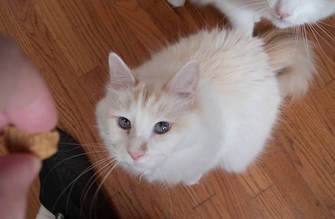 고양이에게 줄 땐 간을 하지 않고, 작은 큐브 모양으로 한두 조각 정도 주는 건 괜찮다고 해요. 하지만 그보다 많이 급여할 경우, 고양이가 구토나 설사, 복통 증세를 보일 수 있습니다.