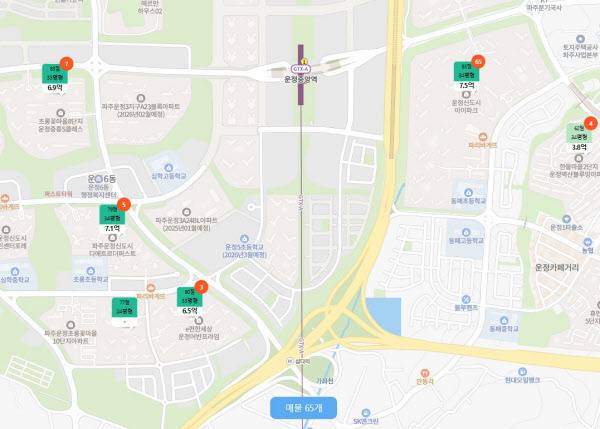 집값이 저평가 된 곳도 있다. 초롱꽃마을6단지 ‘GTX운정역금강펜테리엄센트럴파크’는 84㎡가 5억6900만원 수준이다. 초롱꽃마을13단지보다 한 블록 떨어져 있어 1억원 저렴하다.