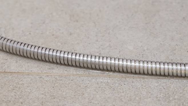 화장실 샤워기 줄 사이에 낀 때도 마찬가지로 치약을 활용하면 아주 간편하게 제거할 수 있답니다.