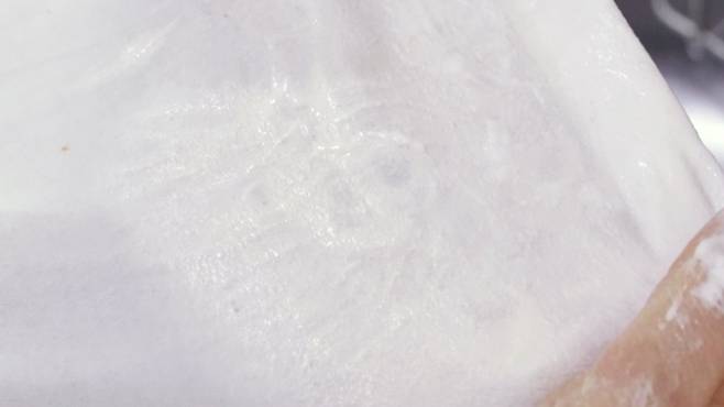 그리고 손으로 살살 문질러가며 닦아 주세요. 이때 주의할 점은 흰 옷이 아니라면 물이 빠질 수 있으니 조심하는 것이 좋아요.
