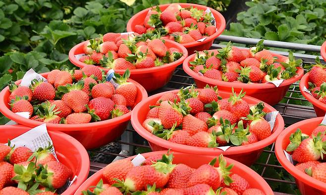 하지만 과일값 상승으로 딸기값은 지난해 12월31일 기준 100g 가격(상품)은 2798원으로 1년 전(2403원)보다 16.4%, 평년(2117원)보다는 32.1% 높았다.