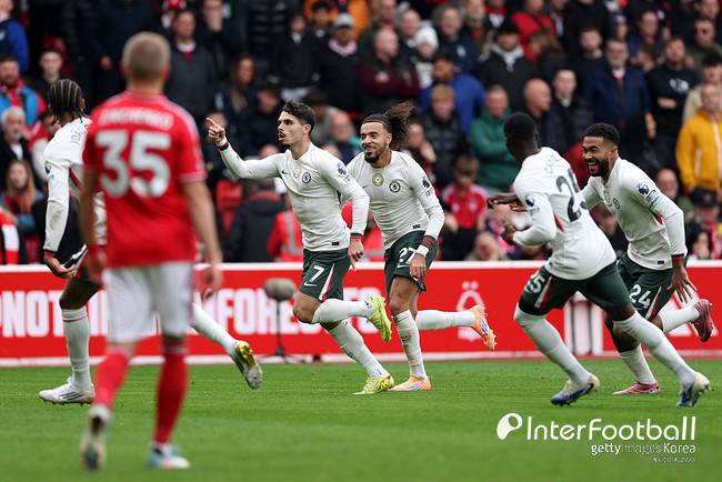 후반전이 시작됐다. 양 팀이 바로 교체 카드를 꺼냈다. 첼시는 라비아, 산투스, 가르나초 대신 카이세도, 기우, 기튼스를 들여보냈다. 노팅엄은 아워니이를 빼고 제주스를 투입했다.