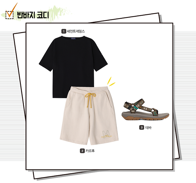 살짝 와이드 핏의 반바지를 입었다면 크롭 티셔츠를,