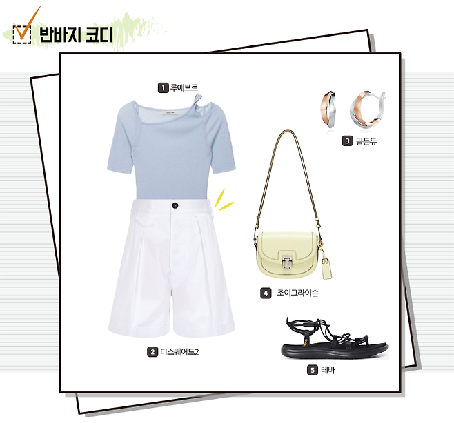 살짝 와이드 핏의 반바지를 입었다면 크롭 티셔츠를,