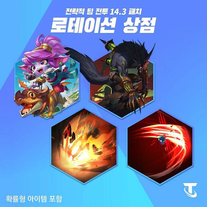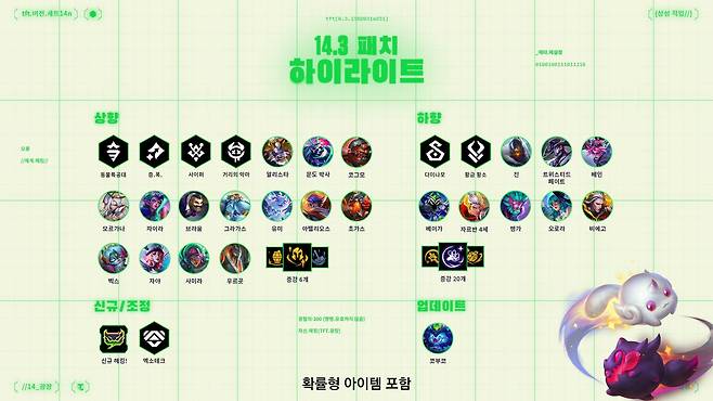 4월 30일, TFT에 전에 없던 변화의 바람이 불어온다. 14.3 패치에서는 예측 불가능한 재미를 선사할 '해킹' 시스템과 게임 시작부터 흥미로운 선택지를 제공하는 시작 조우자가 새롭게 등장한다. 더불어 기존 특성 및 유닛들의 밸런스가 조정되고, 5단계 유닛 코부코가 완전히 새로운 모습으로 탈바꿈하여 전략적인 선택의 폭을 넓힐 예정이다.
