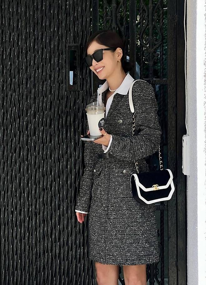 배우 기은세가 가을 분위기 물씬 풍기는 풍기는 파워우먼 트위드룩으로 여신같은 미모를 뽐냈다.