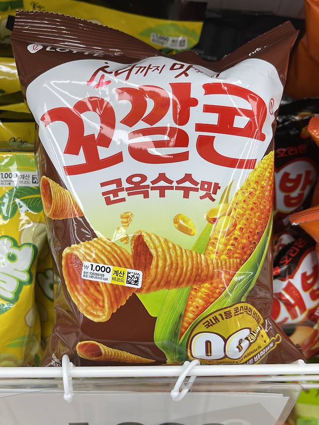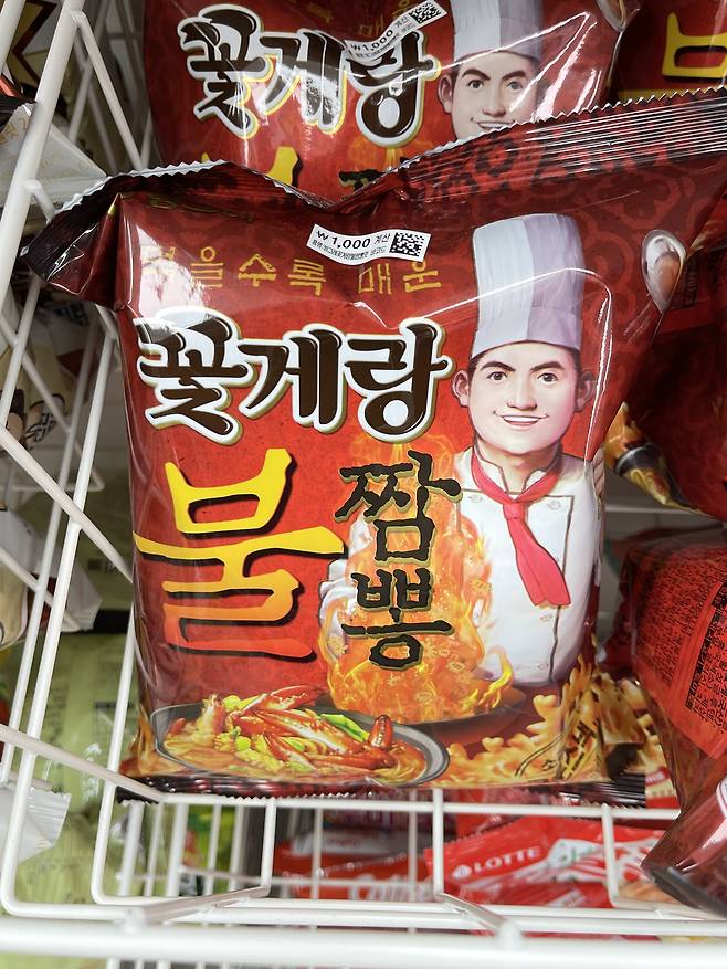 꽃게랑 기본 콘 스낵에 불짬뽕 시즈닝을 더한 제품으로, 기름에 튀기지 않고 소금에 구워 만들어 처음에는 담백한 맛이 나다가 갈수록 매운맛이 올라와요.