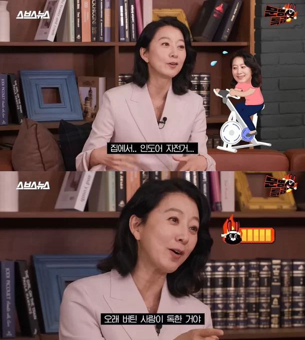 매일 1시간 이상 꾸준히 운동한다는 것은 결코 쉬운 일이 아닌데요. 김희애는 자전거를 타면서 TV를 보거나 라디오를 보는 것으로 지루함을 덜어낸다며, 자신만의 꿀팁을 소개하기도 했습니다.