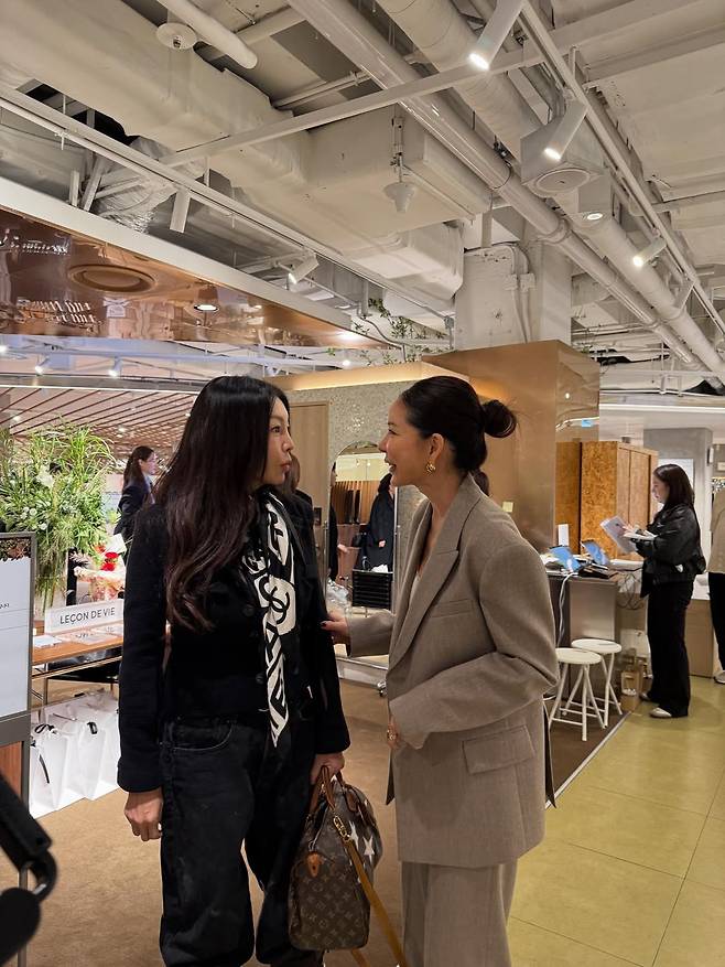 환한 조명이 쏟아지는 백화점 팝업 스토어, 세대를 초월한 두 명의 패션 아이콘이 만나 시선을 사로잡았다.