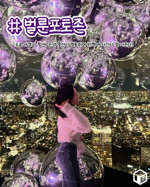 벌룬포토존 평범해보이는 은색 풍선이지만, 통창으로 들어오는 빛이 반사판 효과를 줘 사진이 잘 나오는 시부야 스카이 사진 포인트입니다.