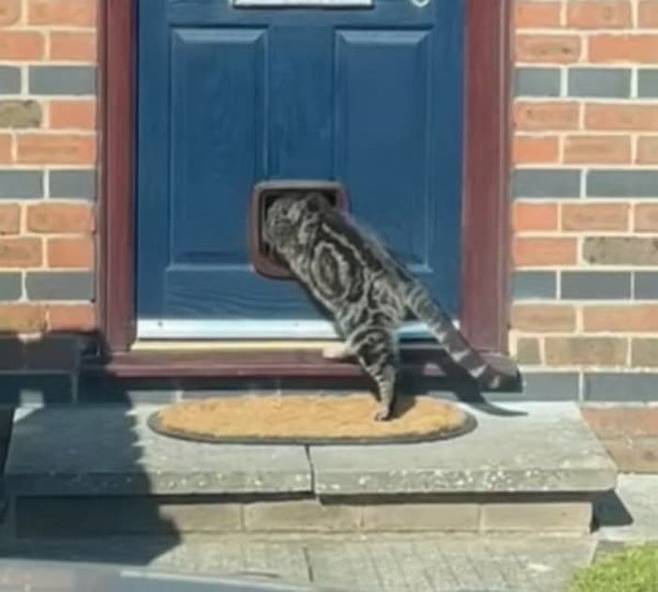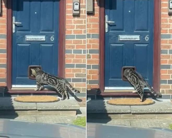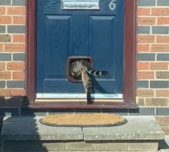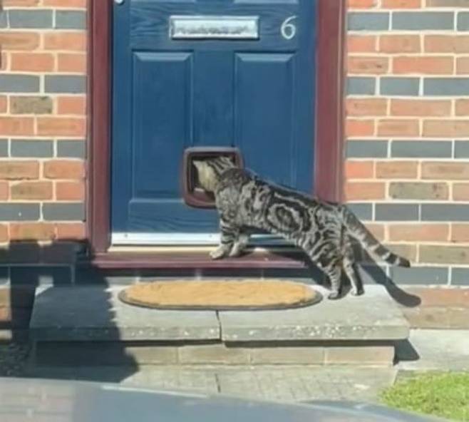 영국에 사는 한 집에서 아주 특별한 일이 벌어졌습니다. 주인은 고양이가 자유롭게 드나들 수 있도록 현관문에 작은 고양이 전용 문을 새로 달아놓았죠.