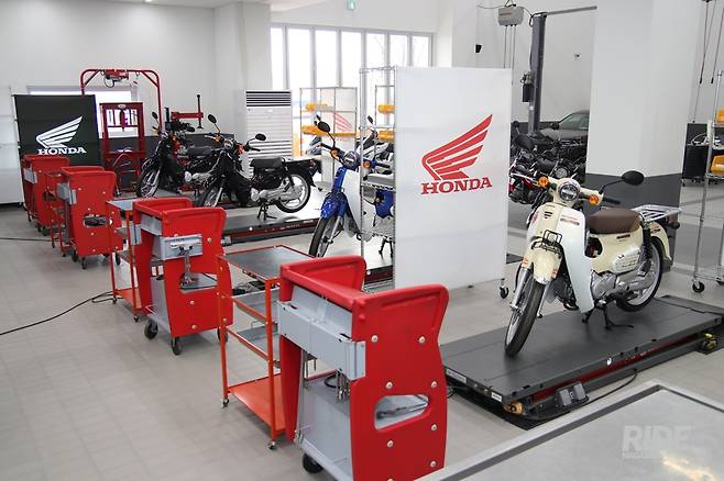 안쪽으로 발걸음을 옮기면 내부에는 다양한 모터사이클이 교육생들을 기다리고 있다. 슈퍼커브나 PCX처럼 초심자들이 선호하는 모델은 물론이고, 본격적인 교육에 가장 많이 사용될 네이키드 CB300R, 도심에서도 편하게 탈 수 있는 온로드 어드벤처 NX500 등 다양한 모델들이 있다. 심지어 슈퍼스포츠인 CBR600RR, 크루저 레블 1100, 투어러인 골드윙 등도 교육용으로 마련되어 있을 정도니, 이 시설을 위해 혼다에서 투자한 차량 금액만도 만만치 않아 보인다.