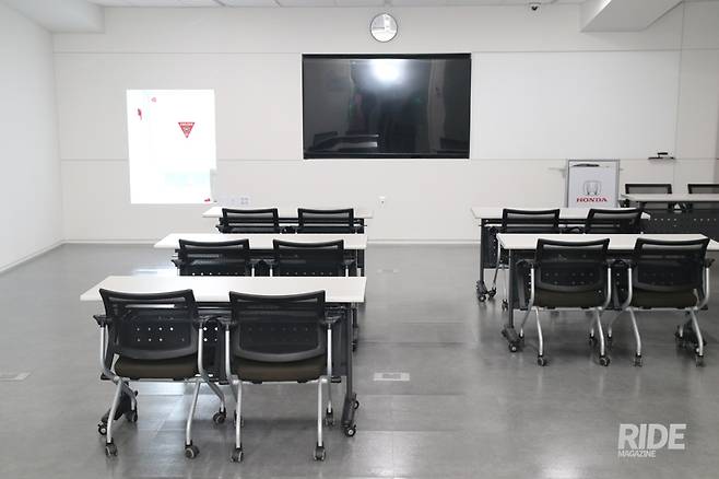 2층에는 이론 교육을 진행할 수 있는 5개의 강의실이 있다. 강의실마다 의자가 그리 많지 않은데, 과목에 따라 최대 8명 혹은 10명까지만 교육을 진행하고 있기 때문. 이에 대해 혼다 에듀케이션 센터 관계자는 “10명으로 진행하는 교육도 있지만, 8명으로 진행하는 것이 내용을 더 잘 전달할 수 있는 교육도 있어 과정에 따라 교육 인원이 다르다”고 설명한다.