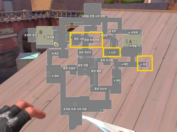 "램프에 연막 좀", "가라지에서 C로 러쉬", "B 윈도우에서 피킹 좀"