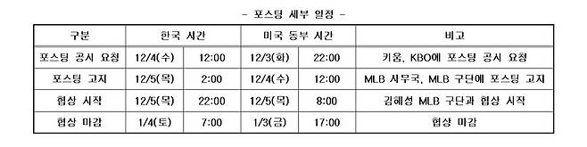 KBO도 "키움 구단의 요청에 따라 김혜성을 메이저리그 30개 구단에 포스팅하여 줄 것을 메이저리그 사무국에 요청했다"고 전했다.