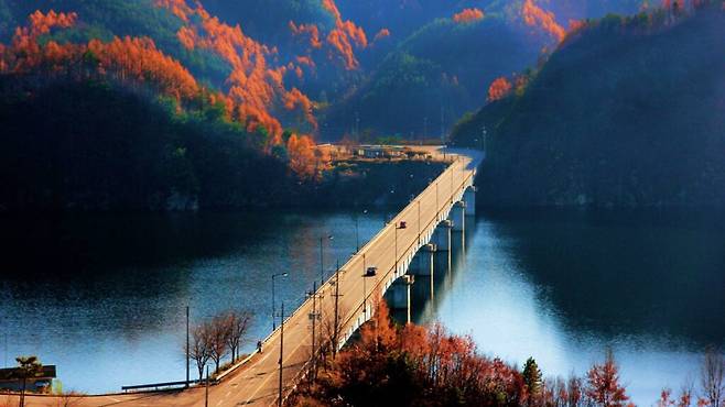 용담호는 단순히 물을 가두기 위해 만들어진 공간이 아니다. 시간이 흐르며 사람의 손보다 자연이 먼저 자리를 잡은 곳이다. 그 위로 만들어진 도로는 호수를 따라 계절을 훑고 지나가는 하나의 선이 되었다.