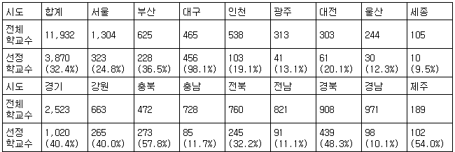 채택률은 대구가 98.1%로 가장 높고 세종이 9.5%로 가장 낮았다.