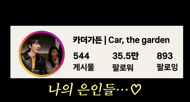 이날 카더가든은 "인스타 프사도 두 분 얼굴로 바꾸려다가 참았다"라고 말해 웃음을 자아냈다.
