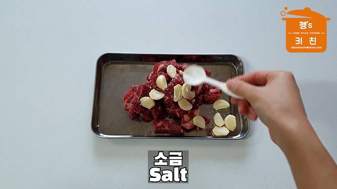 소고기와 함께 밑간하기