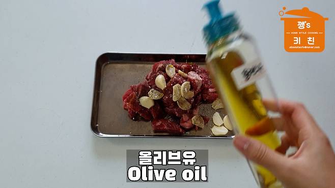 달군 팬에 올리브유를 둘러주세요