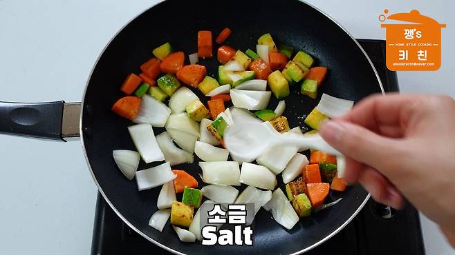 양파와 소금을 살짝 넣고 볶아준 뒤