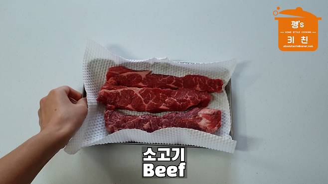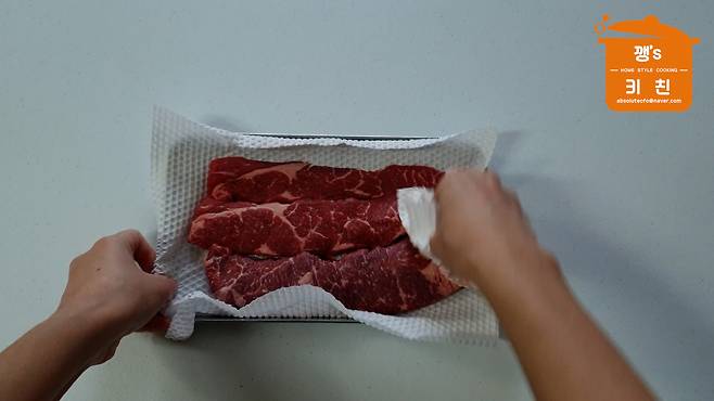 소고기는 키친타월로 눌러가며