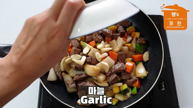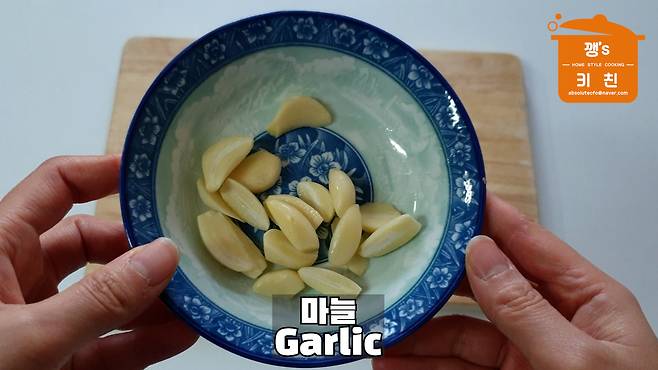 마늘은 편 썰어 준비해 주세요