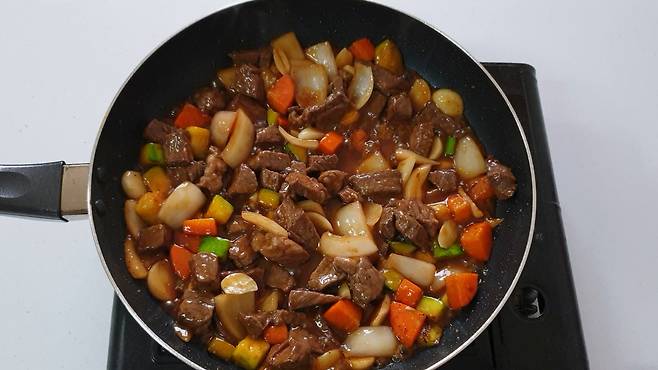 고기가 적당히 익을 때까지 볶아주세요