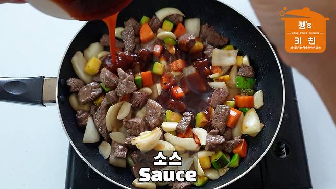 소스와 함께 볶아보세요