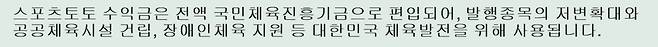 한국스포츠레저,"불법스포츠도박으로 인한 피해 사례 줄일 수 있도록 최선 다할 것" 서울올림픽기념국민체육진흥공단(이사장 하형주)이 발행하는 체육진흥투표권 스포츠토토의 수탁사업자 한국스포츠레저㈜는 불법스포츠토토 신고센터에 국민체육진흥법 위반 행위 신고 시, 최대 2억 원의 포상금이 지급된다는 점을 31일 다시 한번 강조했다.