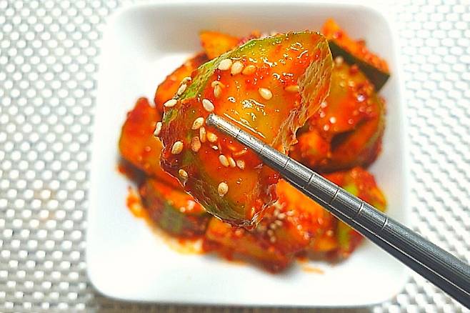 한 개 먹어보니 매콤 달콤 양념에 아삭한 오이가 만나 참 맛있습니다. 뜨끈한 밥에 곁들여 먹으면 밥 한 공기 순삭하게 하는 밥도둑입니다. 만들기 쉽고 맛도 좋으니 한번 만들어 보세요^^*