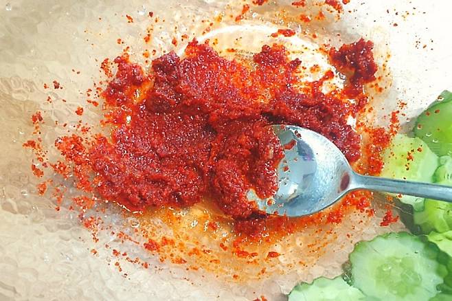 고추장 1/2T, 고춧가루 2T, 소금 1/2T