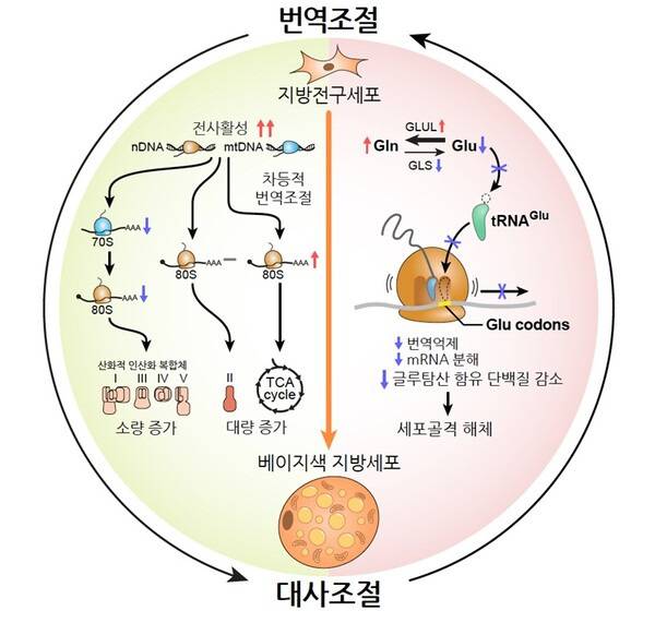 연구팀은 이를 바탕으로 베이지색 지방 세포가 자신의 대사적 특성에 맞춰 미토콘드리아 내 복합체 구성을 조정한다는 것, 그리고 이러한 조절이 유전자 발현의 번역 단계에서 정밀하게 이루어진다고 보았다.